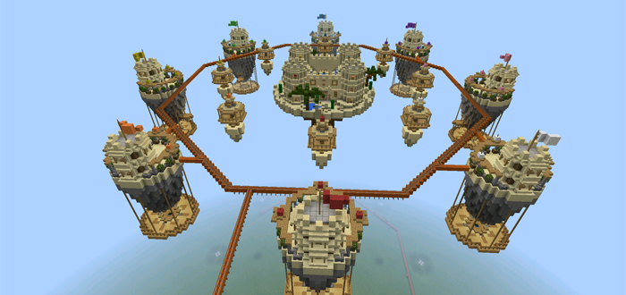 SkyWars II is a PvP map for up to eight players. There are a total of nine floating islands where eight of them are meant as the start point for each player. On the island in the center there is a stronghold which should be the objective of every player to access as there are plenty of great gear in chests there. There are no set rules so you could go ahead and make up your own ones as you see fitting.