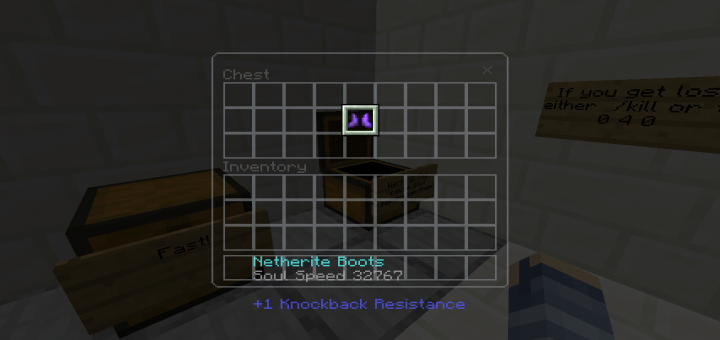 This is an experimental world I plan to use to help create minigames and possibly a kit pvp. This World currently let’s you move at incredible speeds and works best with a higher render distance. Options are soul speed 16, 256, 32767.