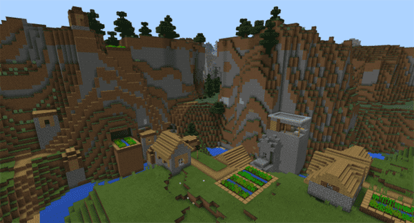 Villages are easy to come across but it’s usually when something is different from what we normally see that we post the them on MCPE DL. In this particular seed you will find in a village where some of the houses has been generated on top of hills and where some of the houses just look unique.
