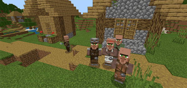 The idea comes from Vindication Villager Addon, but you can strengthen Villagers by giving them some weapons instead of just Iron Axes. Due to Pillagers and Raids are added from Village and Pillage update, Vindication Villager Addon seems to be outdated.