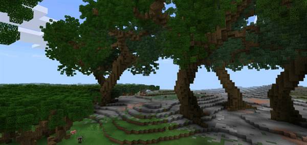 This is a huge custom terrain suitable for survival gameplay or other types of adventures. It includes several different biomes with custom trees, mountains and more. There’s a huge cavern somewhere under spawn so be careful when you start digging. If you are playing the map on a low-end device then make sure to turn down the render distance.