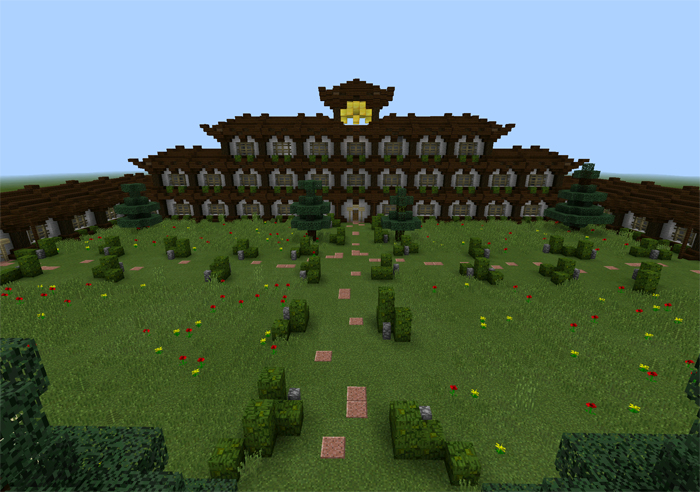 It’s hard to tell whether the Temple of Ezerlia is based on Japanese or Chinese architecture. We are certainly no architecture experts but to a layman’s eye we would guess it’s Japanese architecture. Either way, it’s a majestic looking temple built in a flat world map. At spawn there are a couple of normal sized homes and further away you’ll be able to catch a glimpse of the temple.