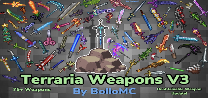 Have you ever wanted to experience Terraria weapons inside Minecraft? Or you just wanted more swords in your Minecraft world! Well, your in luck! In this addon I’ve added over 75+ weapons to be used and to crafted. All weapons have different/accurate looks and stats! Which is very cool! Note: This Addon is still in Beta, So expect bugs and glitches!