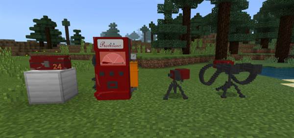 Dispenser: This machine heals players, cows, pigs, sheep and chicken by shooting health projectiles at them. You can build it by using a Rose Red dye on the Toolbox (Shulker).