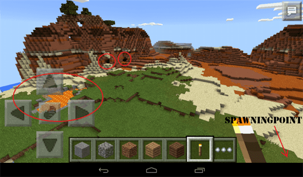 On the right side of spawn is a mesa biome. As usually, the mesa biome is big with loads of open caves which you can enter and explore.