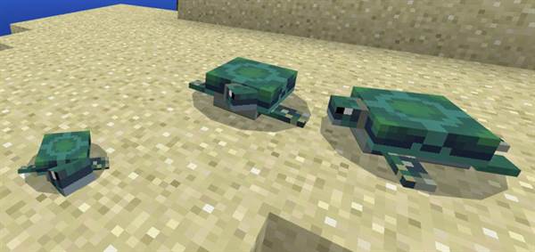 Every time that a squid spawns there’s a 50% spawn chance that it will spawn a turtle instead. But since they replace pigs they will also be found on land where they will suffocate if they don’t get into the water quick enough.