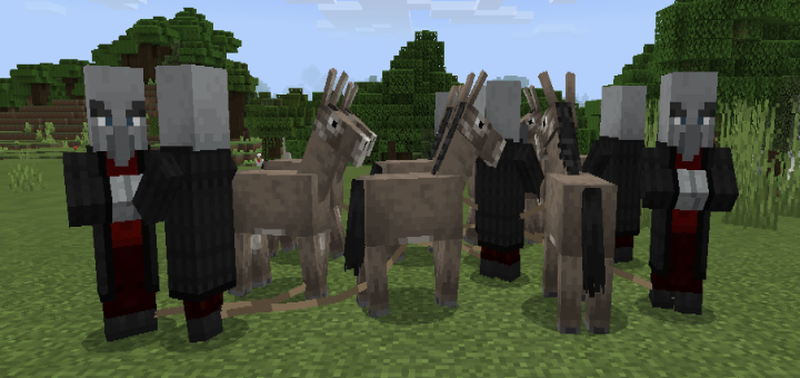 This addon adds a new Illager to the game, the Wandering Illager! Just imagine a wandering trader that has gray skin and fights back when you hit him, that is this guy.