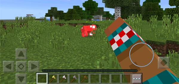 Hold down your finger on the screen (while holding a throwable axe) to throw it. If it hits a mob it will be hurt or die (depending on which axe you have thrown).