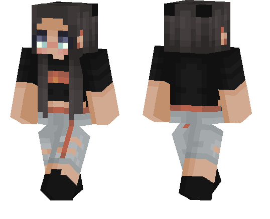 Black hair, ear rings, thrasher croptop.