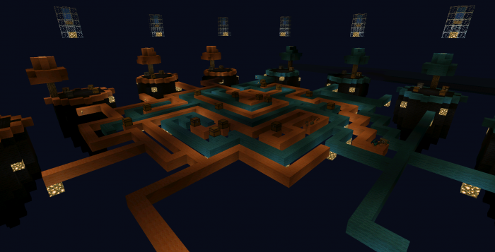 TRON Skywars is a PvP map for up to eight players. The map looks really cool, especially during the night, as it’s built in red and orange colors and lit up with glowstones.