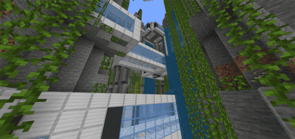 This map, made by NACForm, is a base that runs through a massive double ravine and accommodates multiple rooms providing the best resources for survival. The player enters through a hidden piston door that reveals a massive system of hallways equipped with tools, resources weapons, armor and much more. The map also features the Place Me! add-on made by CODANRAIGENXXI.