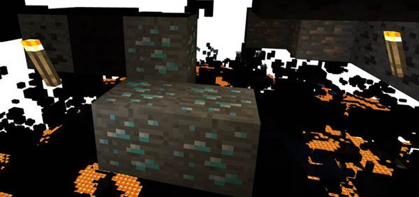 All of stone blocks have been turned invisible and left are just the ores. But since it’s dark it will be difficult to see which ore is which.