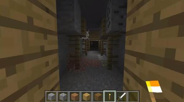 The spawn is in a flat ordinary landscape. What’s not so ordinary is if you dig down because soon enough you will reach a mineshaft.