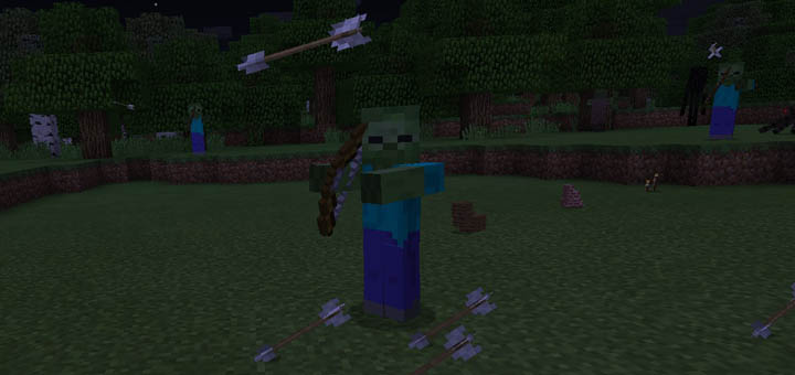 Zombie Archers is a simple but very useful add-on. It gives zombies a bow which they will now use instead of their hands to attack players. It also changes a few other things about zombies such as that it will no longer burn in sunlight.